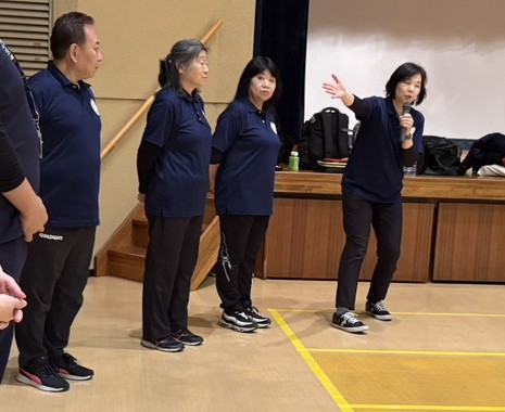 休憩時間では講師よりボッチャの投球で必要な技術である「アプローチ」「プッシュ」「ヒット」についてデモンストレーションが行われ、参加者は後半に向けて耳を傾けていました。